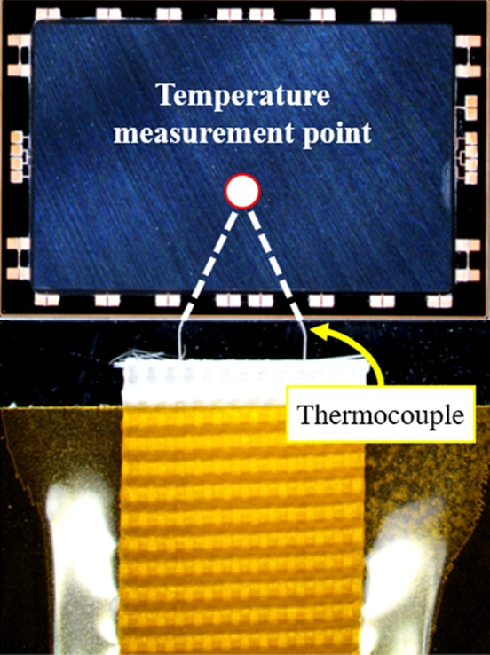 200W에서 260W까지 단계적으로 조절하며 실험을 진행하였다. 그림 6과 같이, 탑 칩과 기판 사이에 열전대를 삽입하여 온도 프로파일을 실시간 모니터링 하였으며, 최적의 공정 조건으로 레이저 출력 260W, 레이저 조사시간