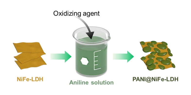 이에 본 연구에서는 NiFe-LDH의 OER 활성을 향상시키기 위한 전략으로, 폴리아닐린(Polyaniline, PANI)을 NiFe-LDH 표면에