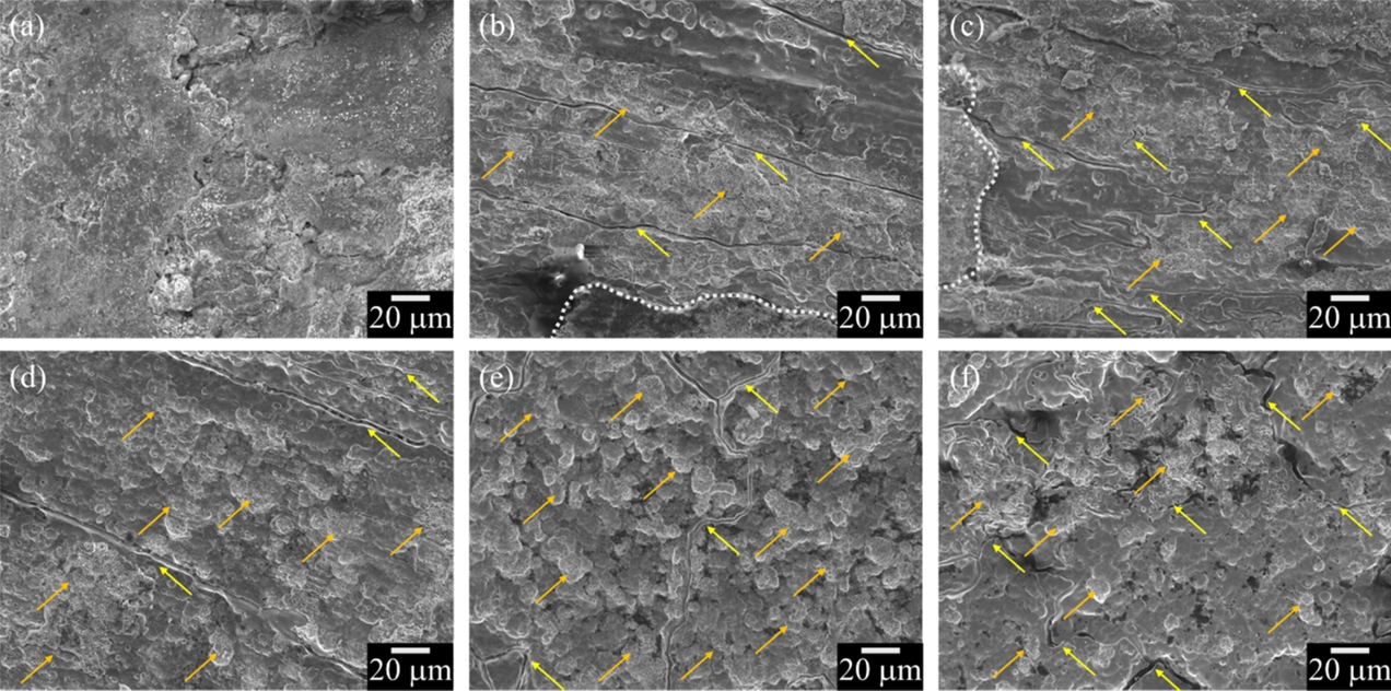 구조의 표면이 관찰되며 (그림 11e, f의 주황색 화살표), 이는 HF가 혼합된 산 처리로 인해 형성된 Cr 결핍층이 선택적으로 용해되는 현상으로 해석된다. 이러한 거동은 산화층 제거 이후