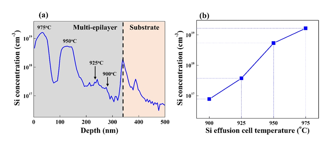 layers and the Si effusion cell temperature was plotted in Figure 1(b). This plot indicates that the average Si concentration increases almost linearly