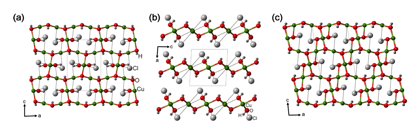 이는 botallackite의 수소 결합의 강도가 clinoatacamite의 강도보다 낮아 안정성이 낮기 때문이다(그림 8). 또한 botallackite는 동질이성체 중 열역학적으로 가장 불안정하여 반응 조건이 유지되면 atacamite 등과 같은 보다 안정한 상으로