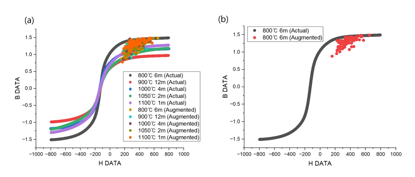 GAN์ ํตํด ์ฆ๊ฐํ์์ผ๋ฉฐ, ๋์ผํ ๋ชจ๋ธ์ ์ฌํ์ตํ์ฌ ๊ฒฐ๊ณผ๋ฅผ ํ์ธํ์๋ค. ์ด๋ 800ยฐC๋ถํฐ 1100ยฐC๊น์ง ๊ฐ๊ฐ์ ์จ๋์ ๋ํด 100๊ฐ์ ์ฆ๊ฐ ๋ฐ์ดํฐ๊ฐ