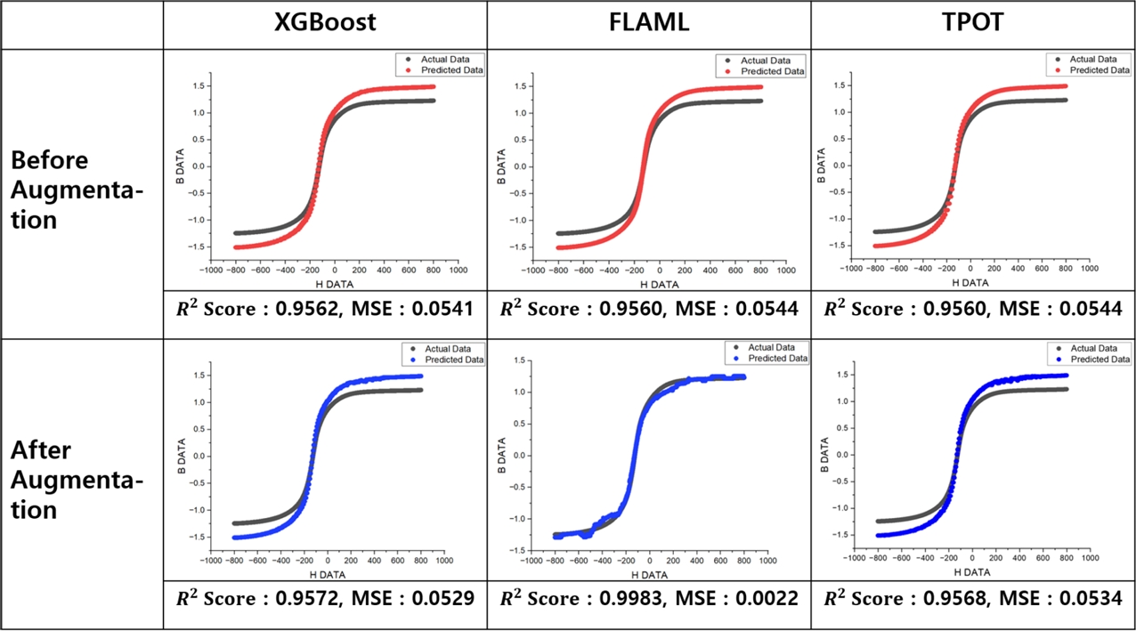 ์ฆ๊ฐ๋ ๋ฐ์ดํฐ๋ H๊ฐ 400~800 A/m ๋ฒ์์์ ํจ๊ณผ์ ์ผ๋ก ํ๋ถํ๊ฒ ๋ณด์๋์์ผ๋ฉฐ, ์ด ๊ตฌ๊ฐ์์ FLAML ๋ชจ๋ธ์ ์์ธก ์ ํ๋๊ฐ ํฌ๊ฒ ํฅ์๋์๋ค.
