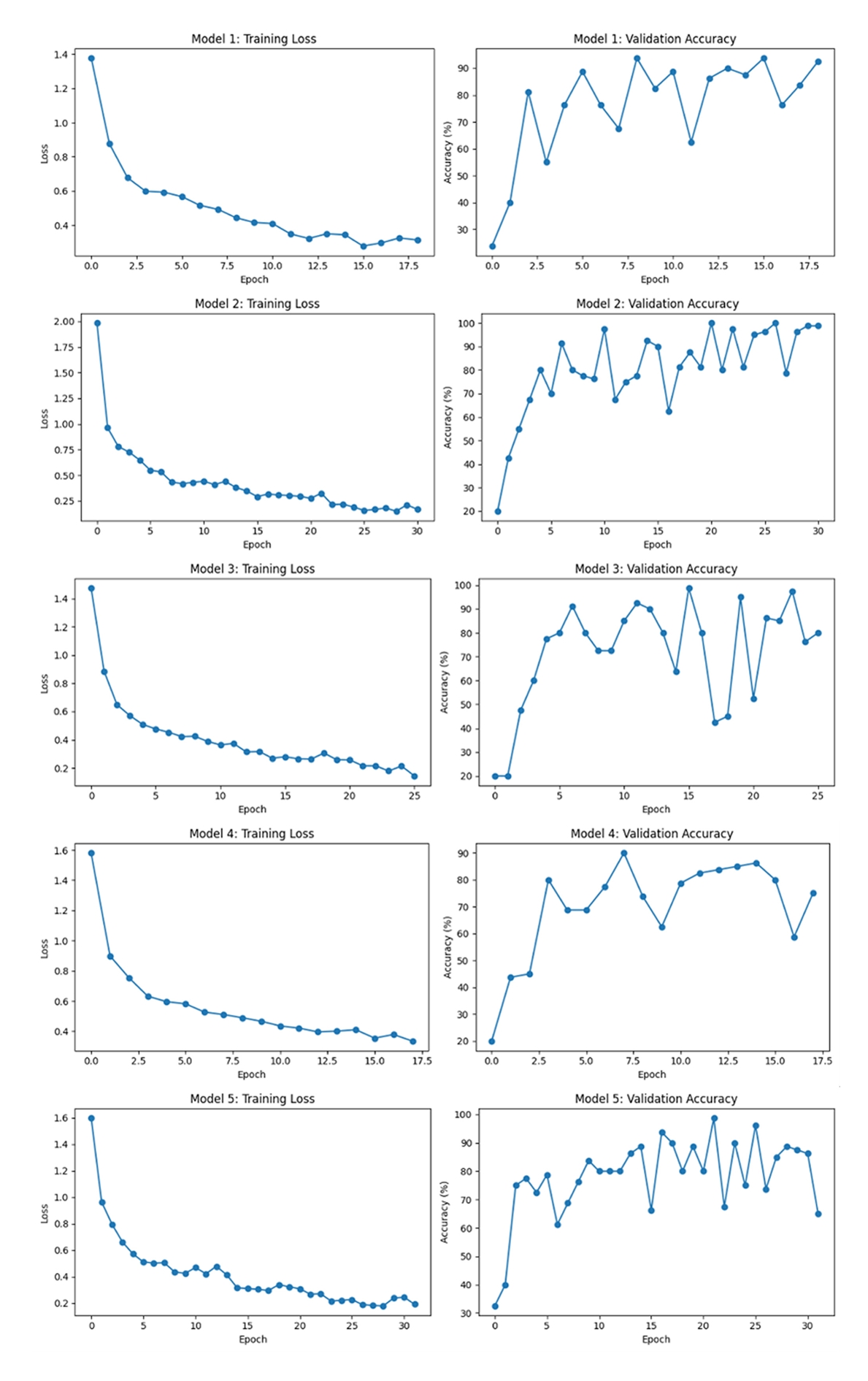 4 achieved 0.920 for both accuracy and F1-score, and Model 5 achieved the highest