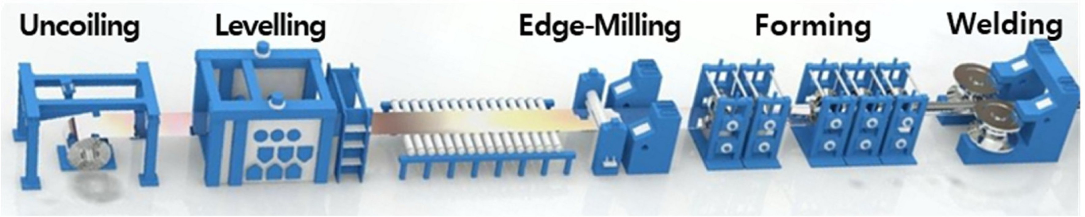 이후 성형 공정을 통해 원형으로 성형한 후 코일의 양 끝단을 서로 맞대어 HF-ERW로 강관을 제조한다. 두께 편차가 ±0.2 mm 이하인 시료 코일의