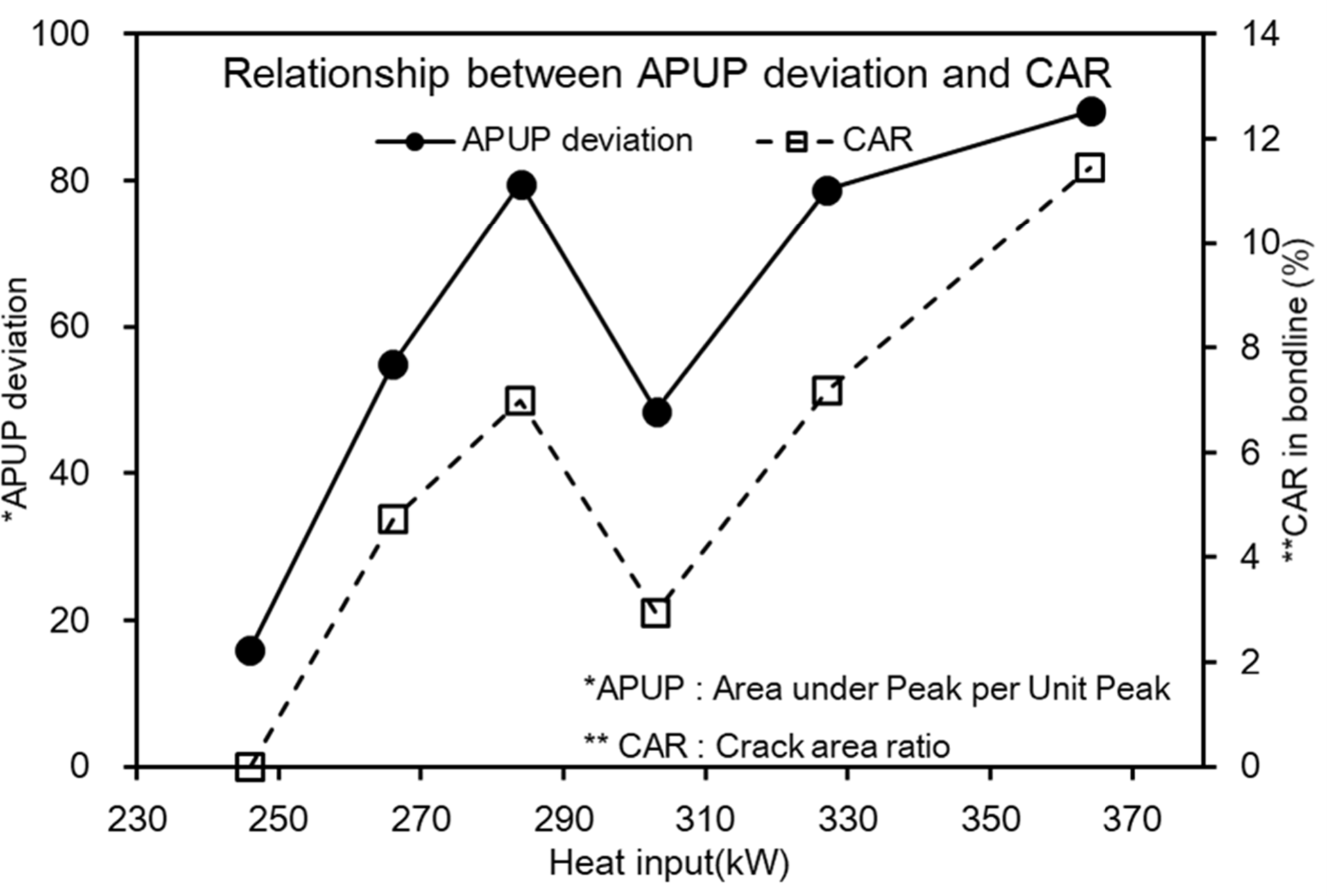 Fig. 13. Relationship between APUP deviation and CAR with respect to heat input variation
