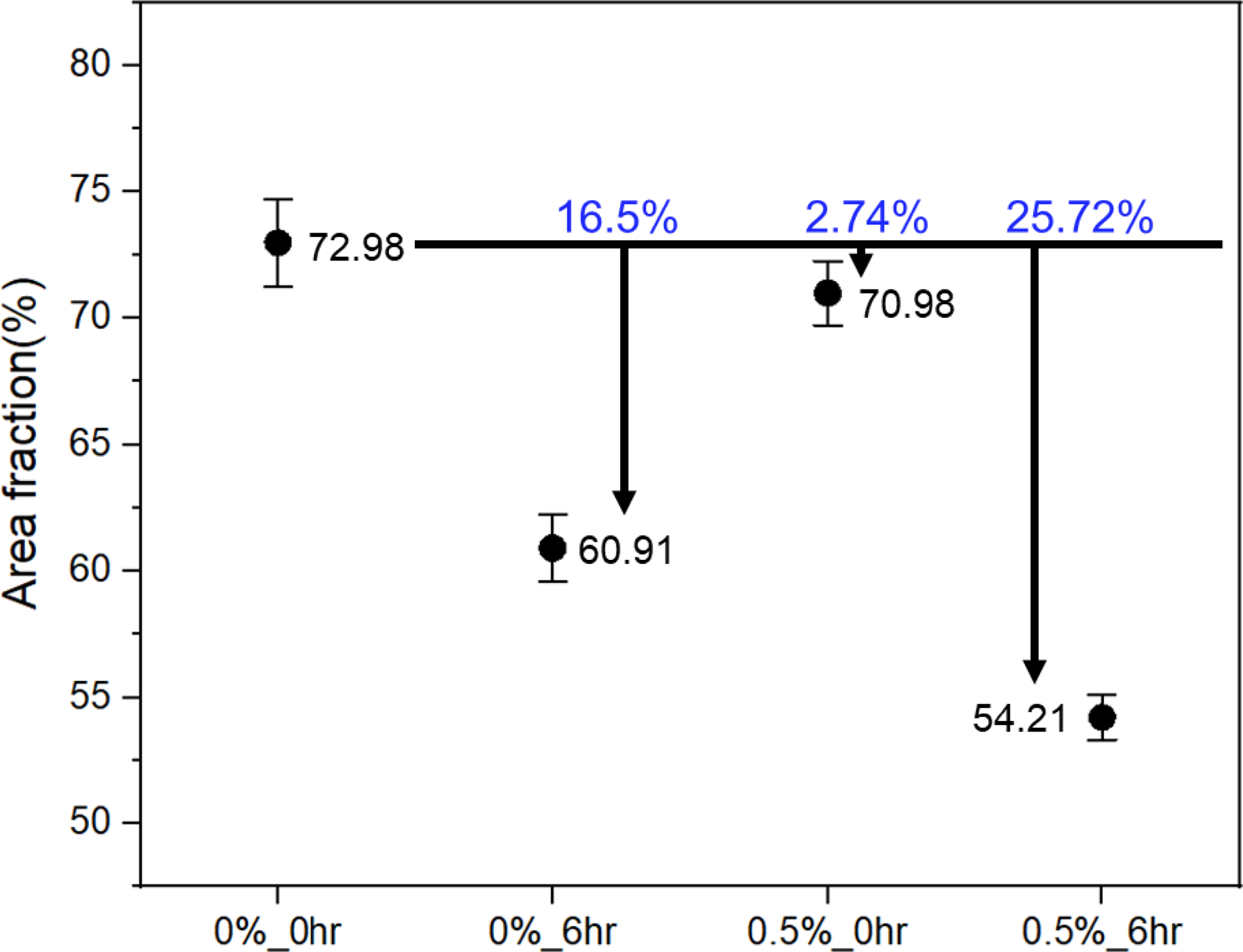 ์ ๋์ ์ผ๋ก ๋ถ์ํ์๋ค. ๊ทธ๋ฆผ 3์ ๋ํ๋ด์๋ค. ์ด์ฒ๋ฆฌ๋ฅผ ์ํํ์ง ์์ 0%_0 hr ๋ฐ 0.5%_0 hr์ ํ๊ท ๋ถ์จ์ ๊ฐ๊ฐ 72.98%(SD 1.4), 70.98%(SD 1.0)๋ก