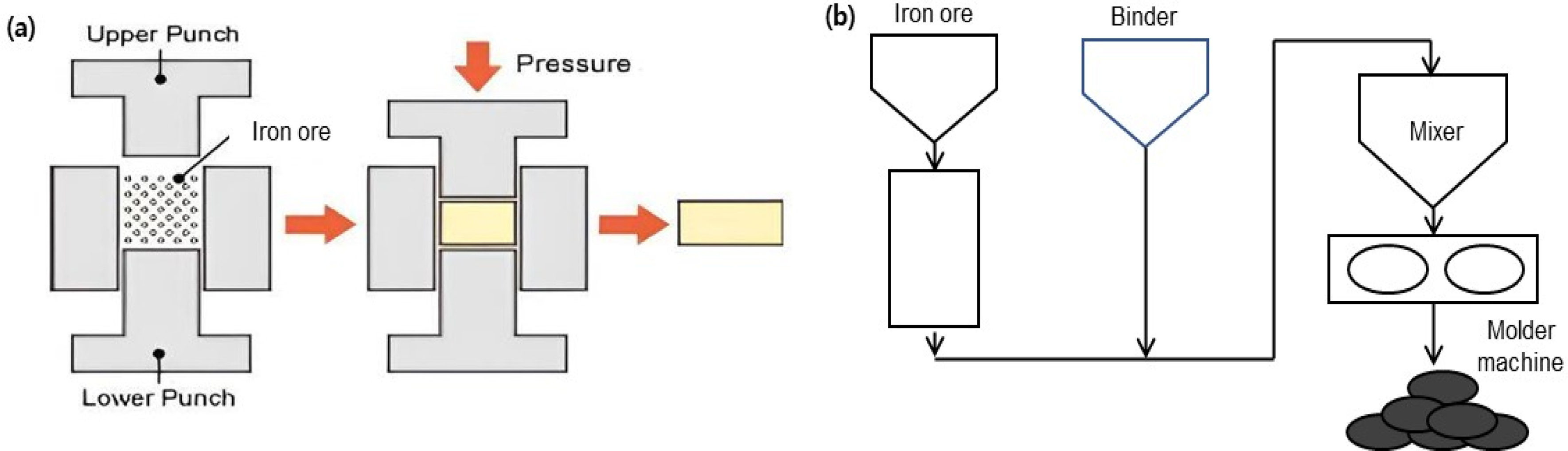 Fig. 1. Schematic diagram of briquette production system (a) Mounting press (b) Briquette