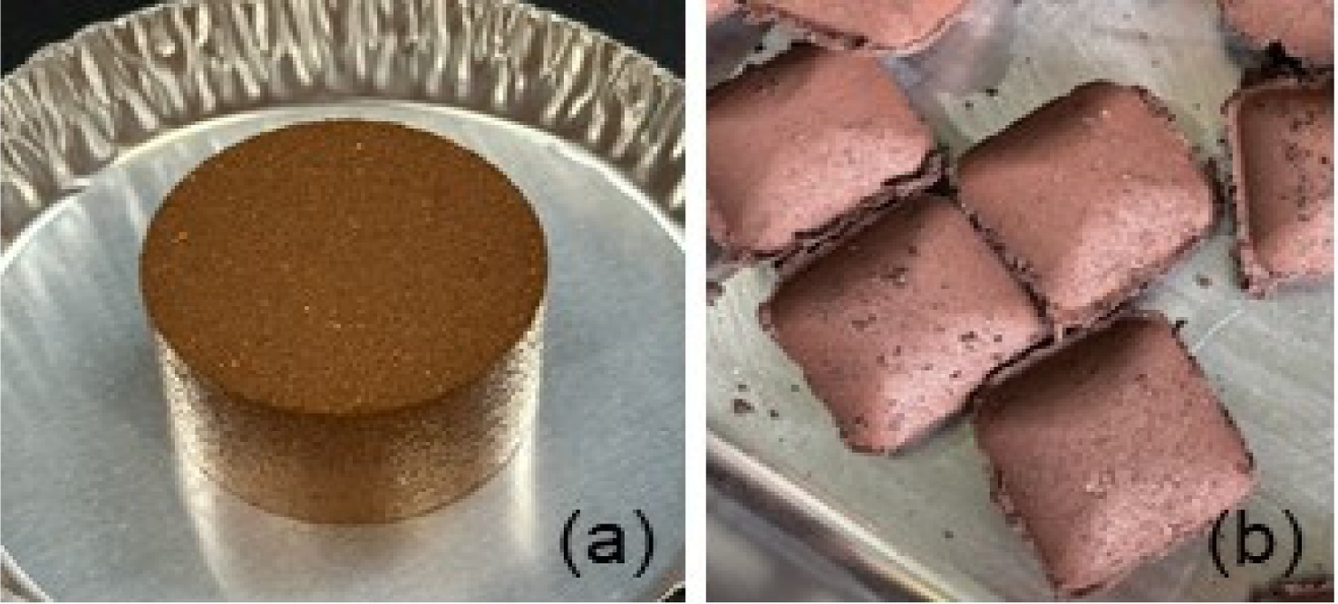 Fig. 5. Manufactured briquette shapes (a) using a mounting press (b) Using a briquette