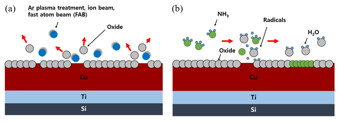 Liu 등[16]은 우수한 Cu 확산성을 가진 Pt를 이용하여 Cu 표면에 10 nm 두께의 Pt 부동태막을 스퍼터링으로 증착한 후, DHF (dilute HF)
