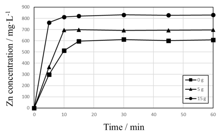 Fig. 10. Effects of activated carbon addition on the Zn dissolution with 10 g of Zn