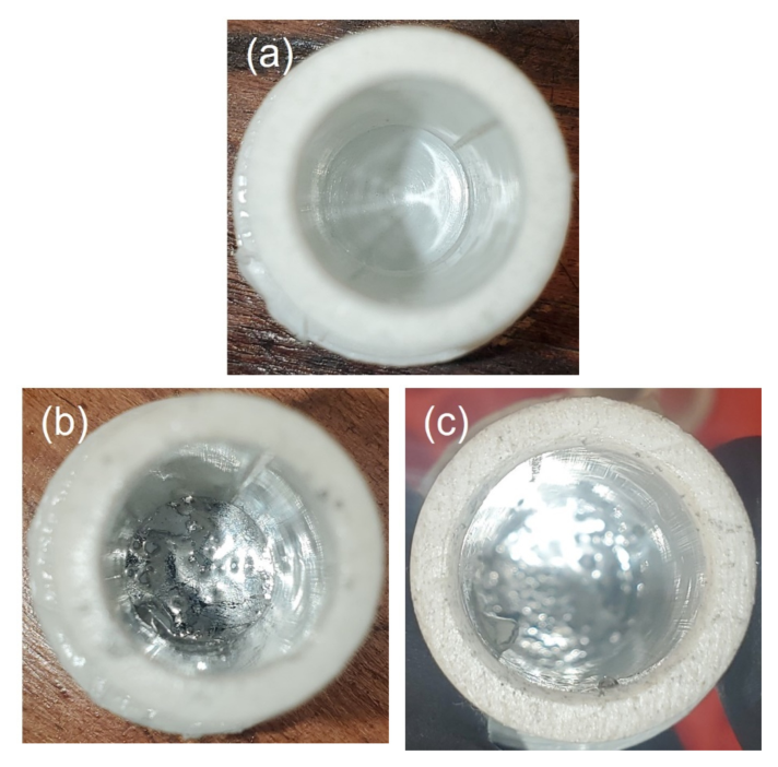 Qualitative analysis of GaInSn after aging in various conditions is shown in Figure 5. Although the shape of the GaInSn surface does not show significant deviation between