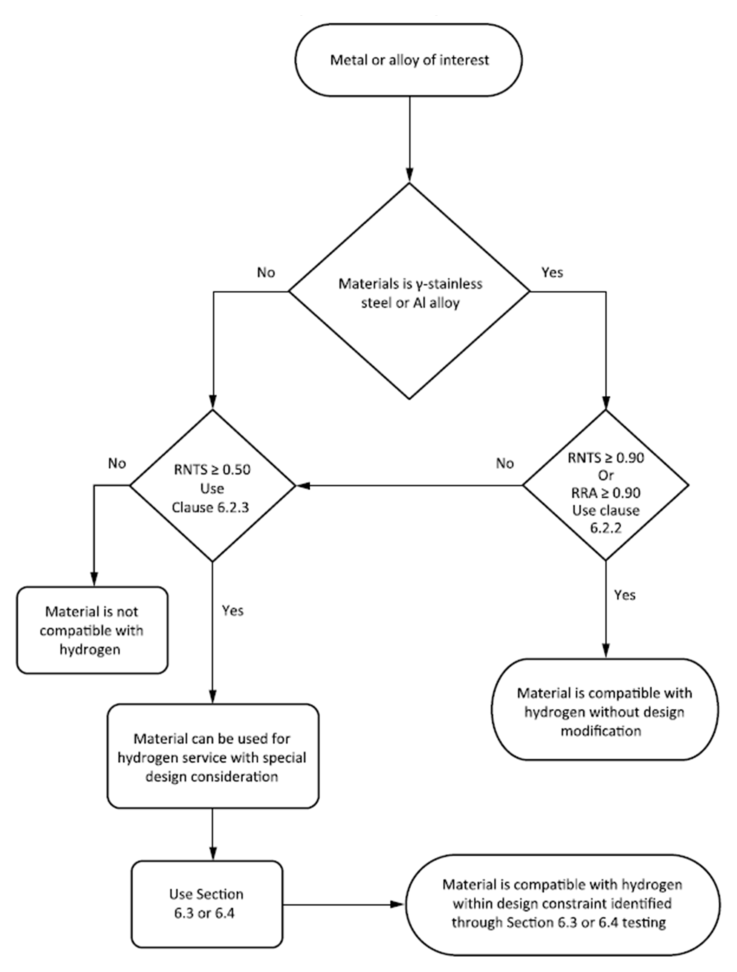 그림 10은 ANSI/CSA CHMC 1 표준에서 재료의 수소 환경 사용 적합성을 판정하기 위한 정성적 및 정량적 평가 절차를 단계적으로 정리한 흐름도를 보여준다.