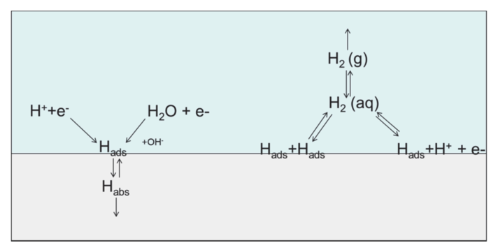 전기화학적 수소 주입은 실험실에서 가장 널리 사용되는 수소 도입 방법 중 하나로, 전해질에서 음극 반응을 통해 생성된 수소가 금속 표면에 흡착, 해리되어